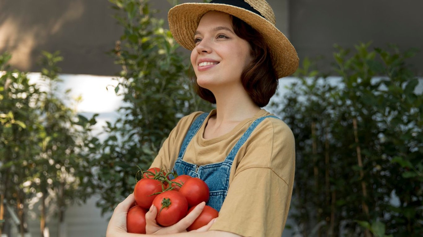 Дівчина тримає помідори. Фото: Freepik